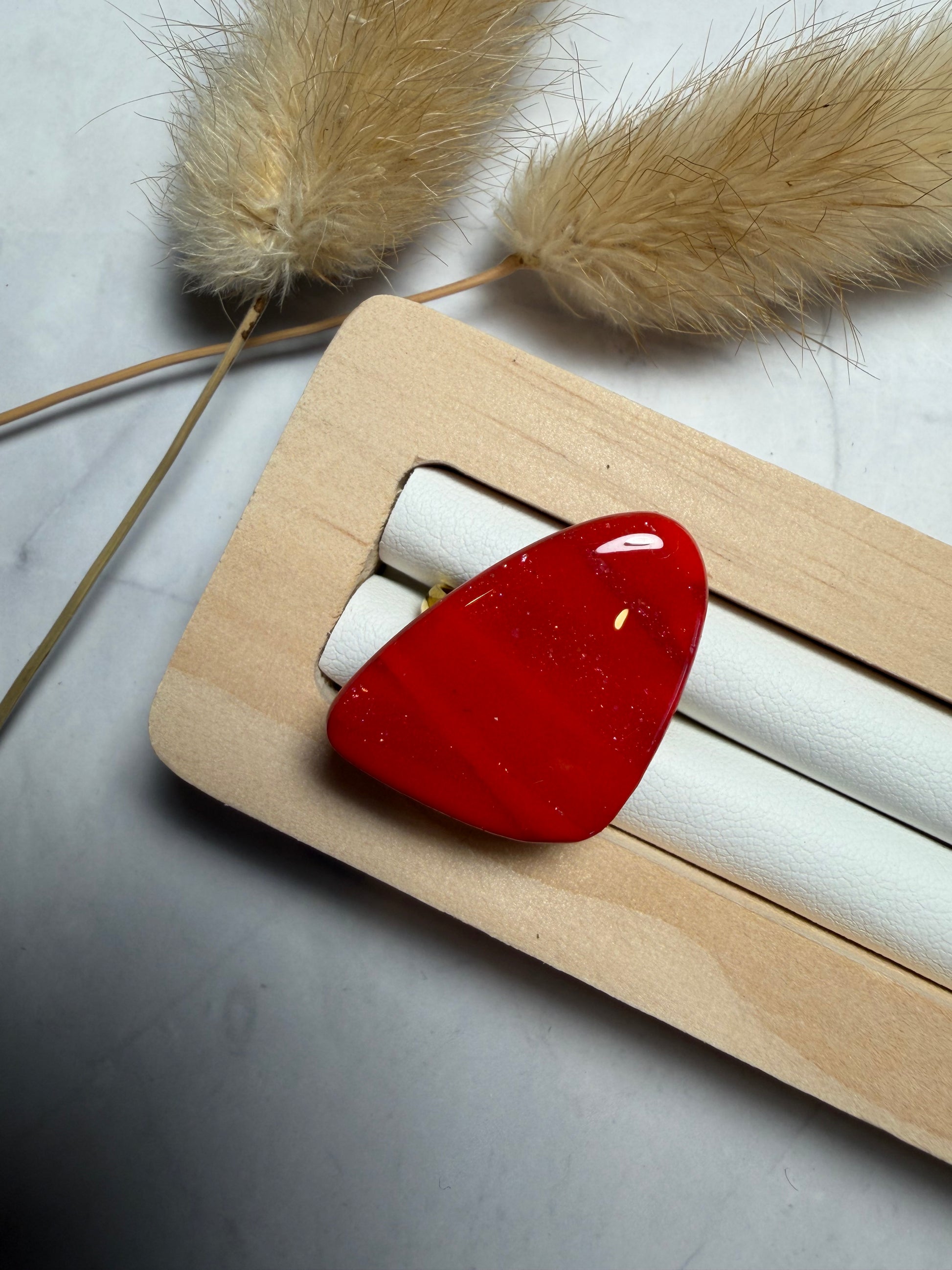 Bague « Galet » marbré rouge/doré