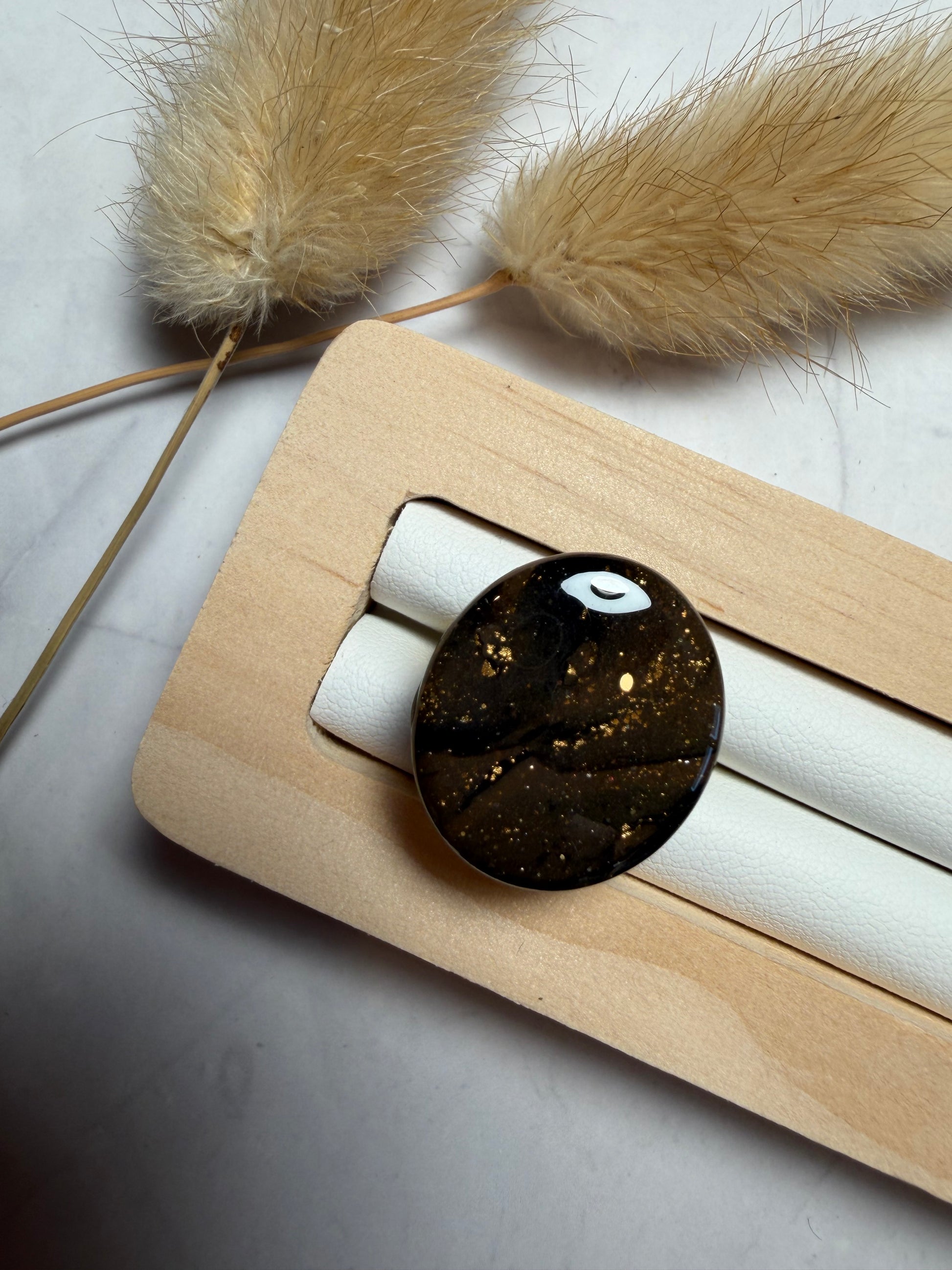 Bague « Ovale » mini, marbré marron/noir/doré