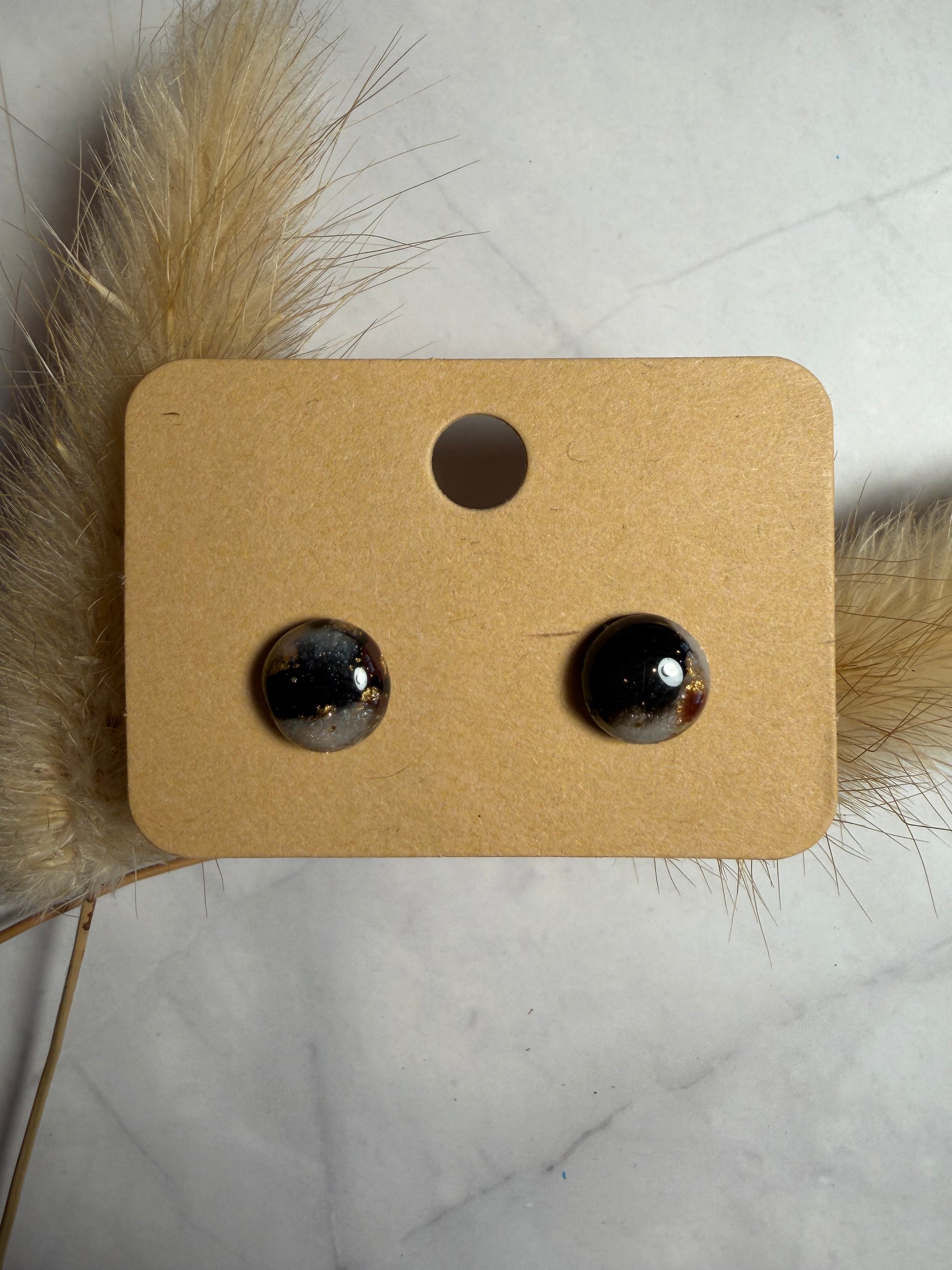 Boucles d’oreilles « Puce » marbré noir, marron et doré