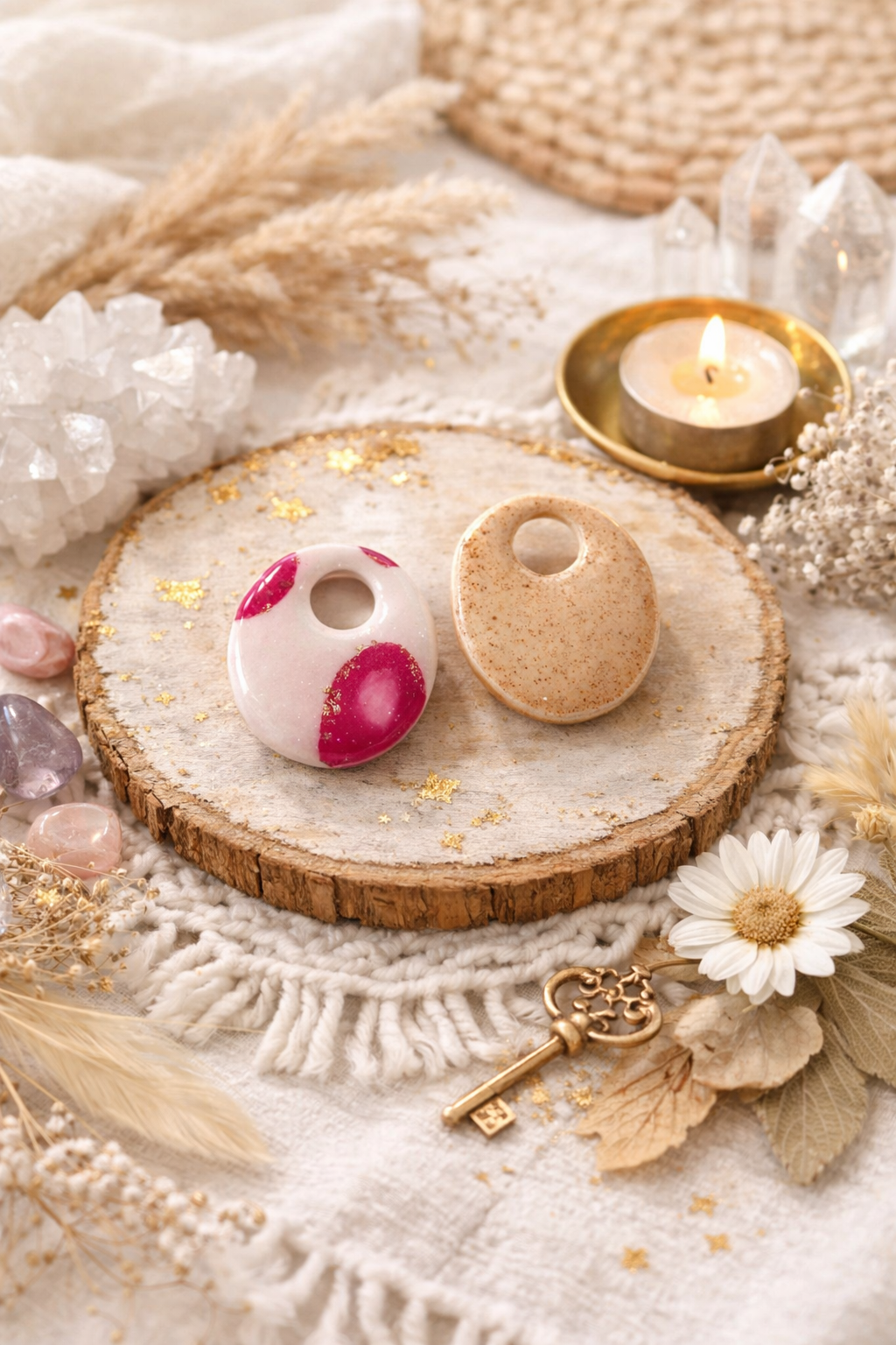 Pampilles "Ovales", blanc/rose/doré